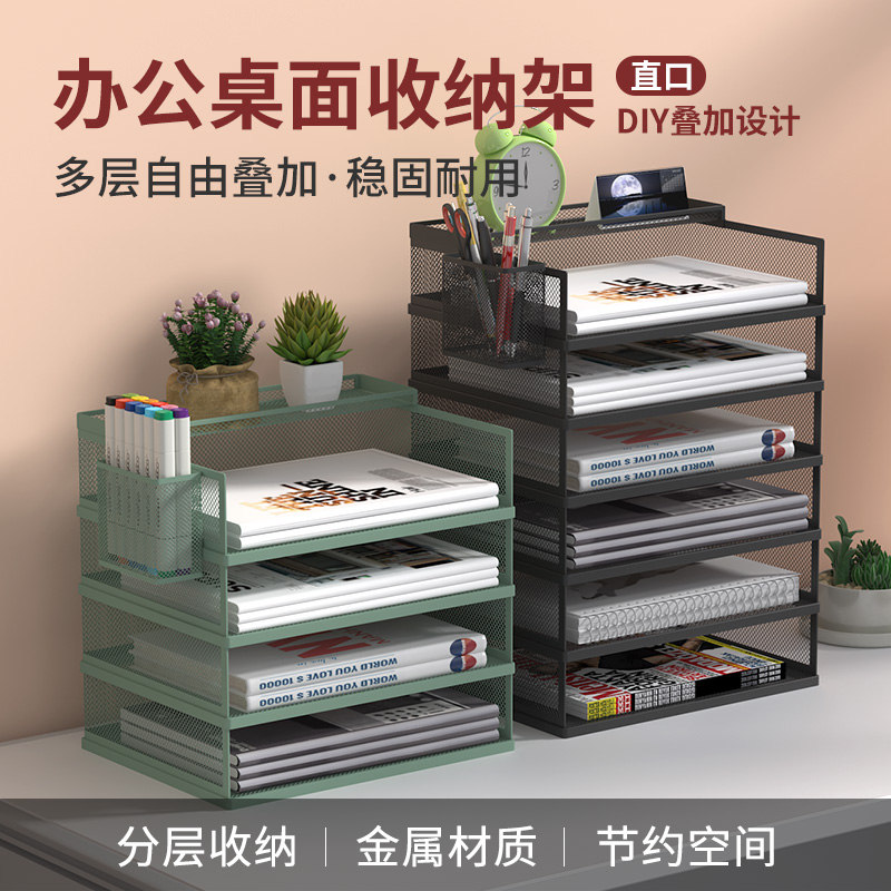 办公桌收纳置物架文件收纳盒办公用品文件架桌面书架多层大容量文件框文件夹A4纸资料档案整理架金属书立架