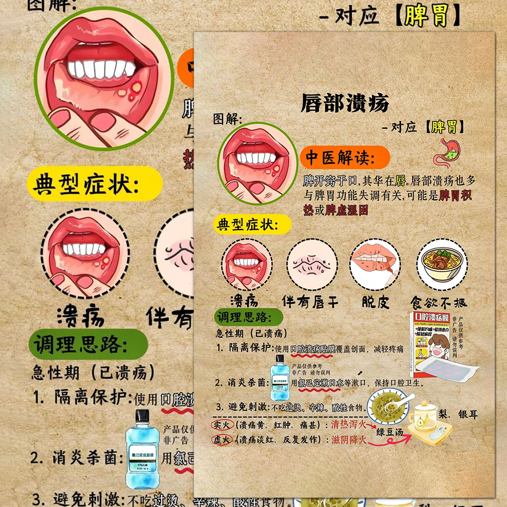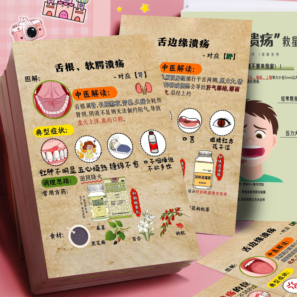 口腔溃疡病因分析中医基础内调与预防知识治疗科普笔记贴画自粘