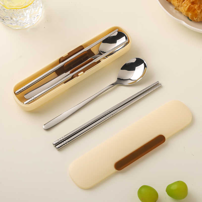 316不锈钢筷子勺子套装便携式餐具盒学生儿童个人一人用专收纳盒