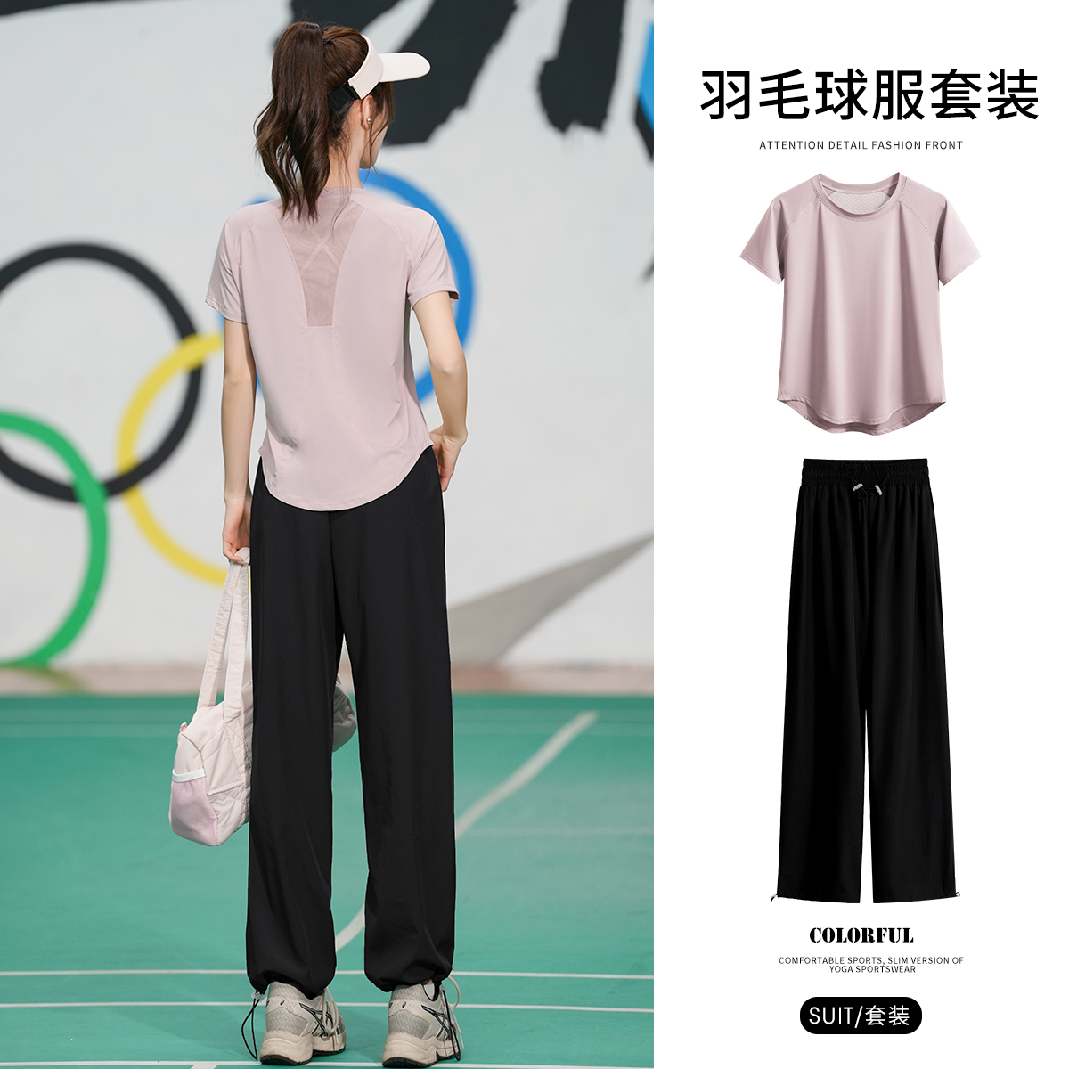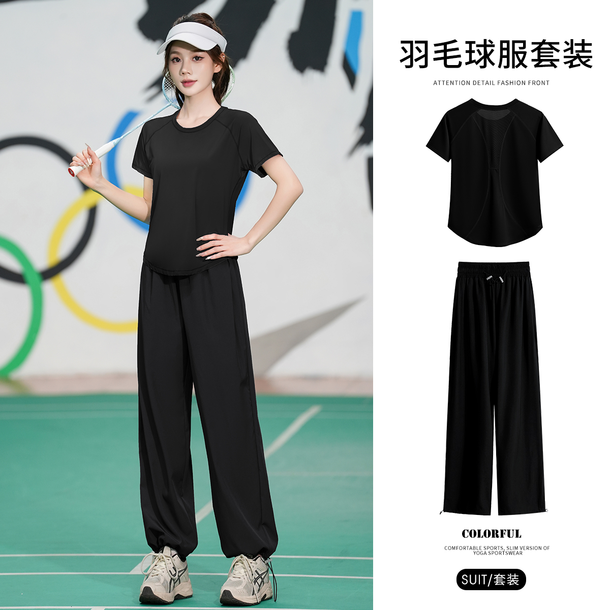 夏季羽毛球速干衣女后透气运动套装专业跑步服健身瑜伽网球训练