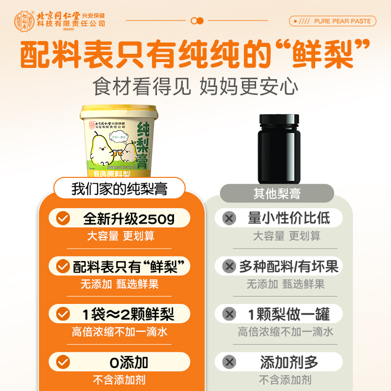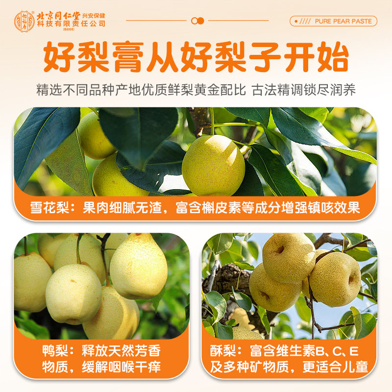 北京同仁堂秋梨膏纯梨膏无添加孕妇婴幼儿莱阳雪梨泡水官方旗舰店
