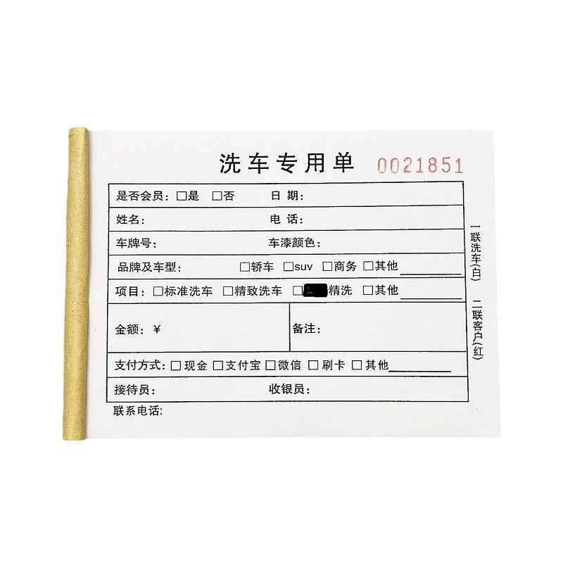 洗车专用单定制二联汽车美容及装饰施工单订做三联车辆清洗接车单