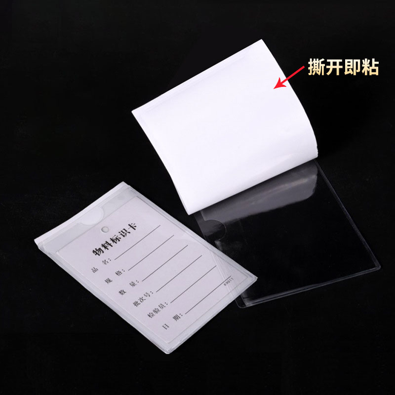 pvc物料卡套透明自粘卡片袋仓库物料标识牌带胶插卡袋塑料标签袋
