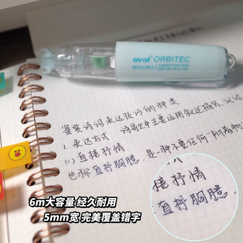 台湾oval欧文修正带涂改带大容量限定学生用莫兰迪色改正带可替换芯进口文具女可爱少女改字带初中生修改带