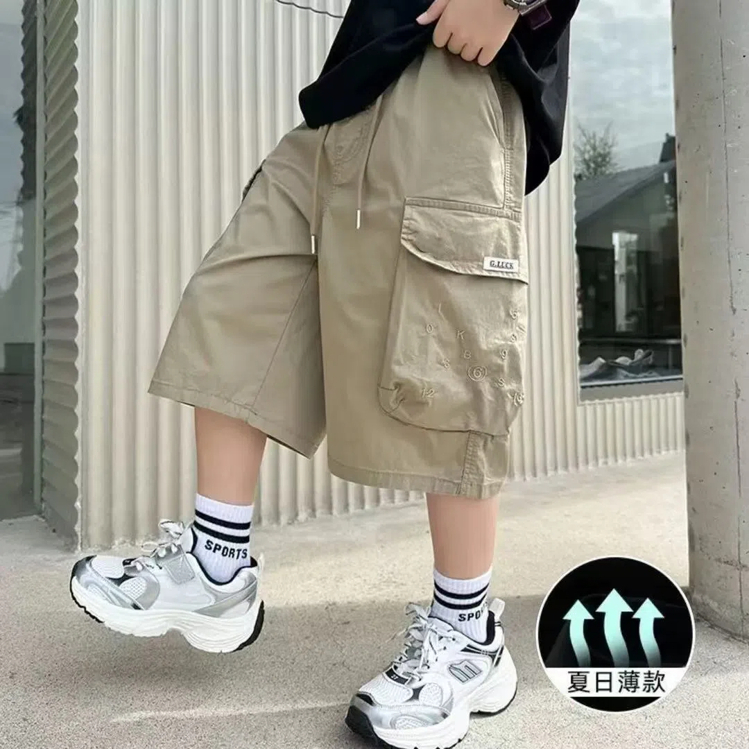 男童工装裤夏季新款薄款五分裤洋气中大童男孩学生休闲宽松短裤潮
