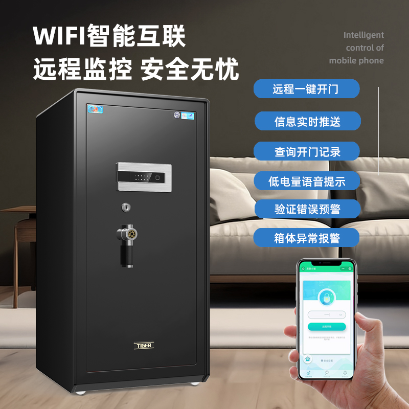 虎牌保险柜家用小型指纹密码保险箱全钢防盗家庭保险柜箱办公室入墙衣柜国标认证csp原3c认证