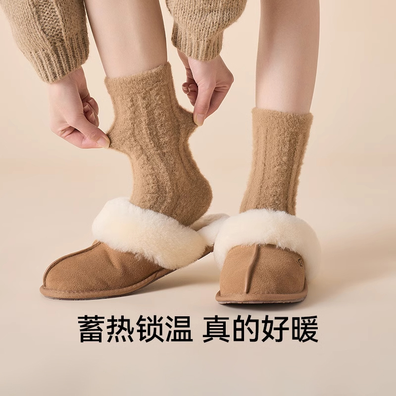 澳绒袜子女秋冬美拉德中筒袜保暖加绒加厚地板长袜居家睡眠月子袜