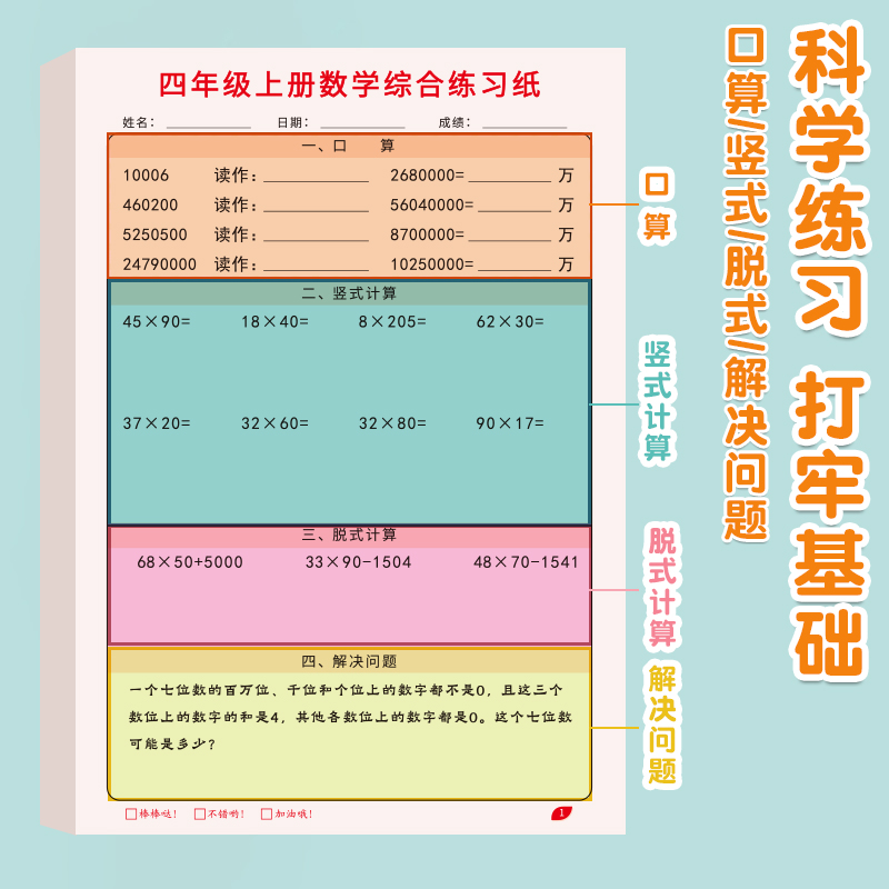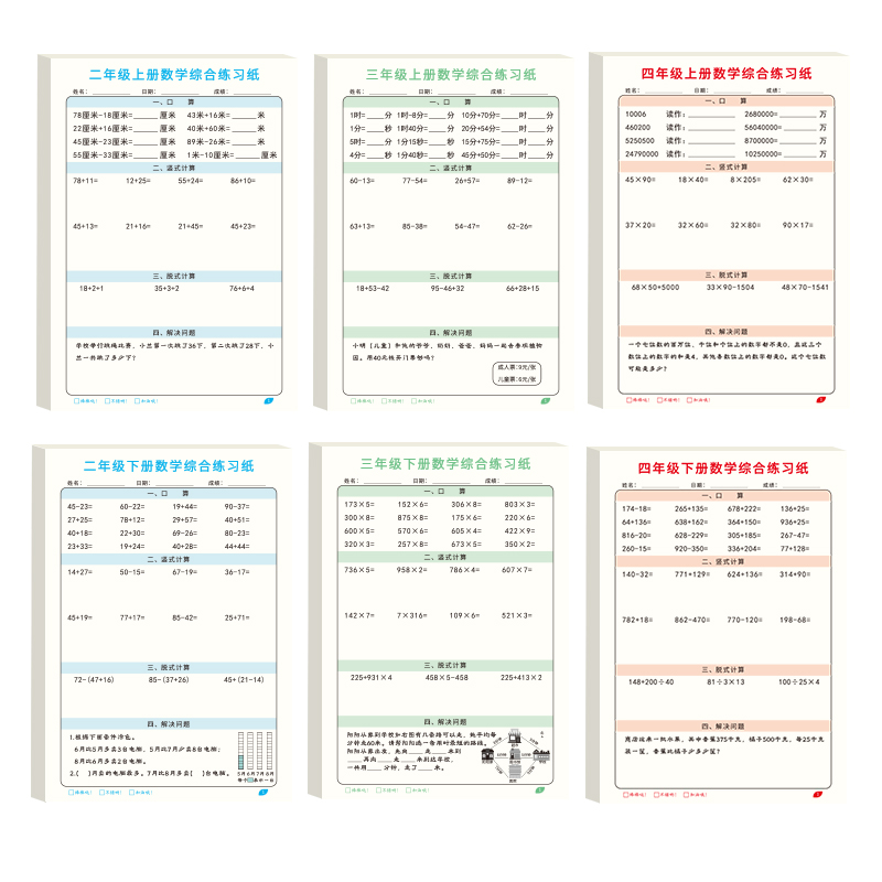 二三四年级竖式数学综合练习纸小学生数学运算专项训练计算题纸课堂同步练习题应用题上下册脱式口算每日一练