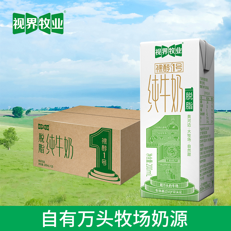 视界牧业营养脱脂早餐奶官方正品200ml0脂肪牛奶学生营养早餐牛奶