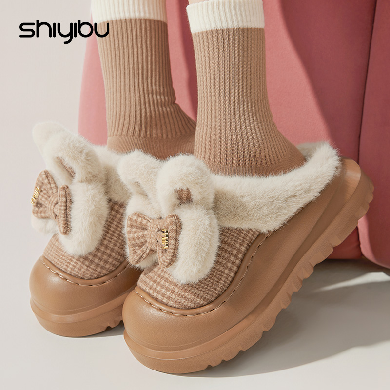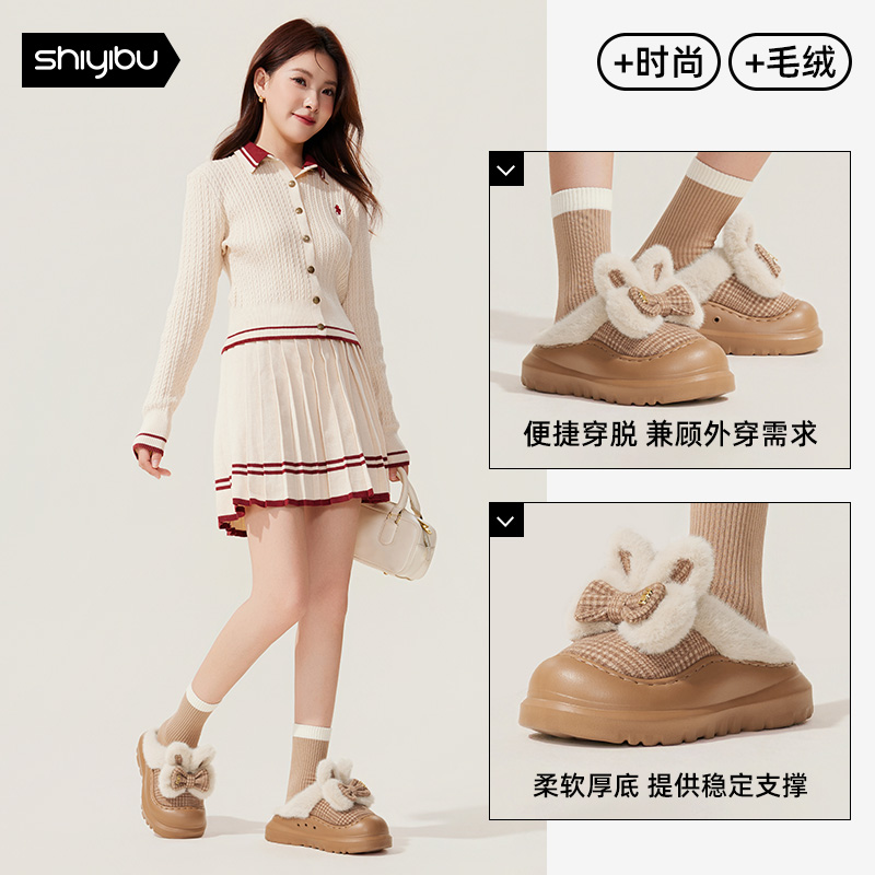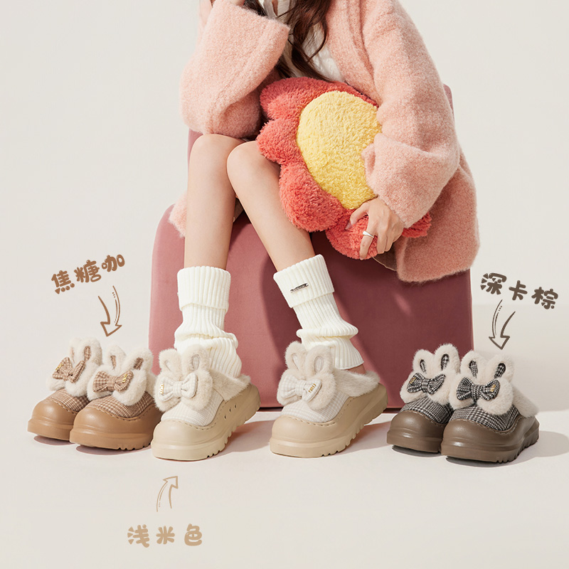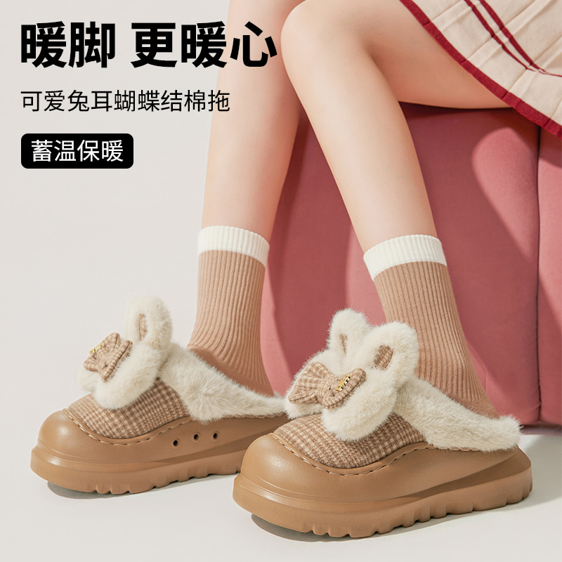 十一步兔耳棉拖鞋女款2025冬季新款居家保暖厚绒防滑外穿可爱棉拖