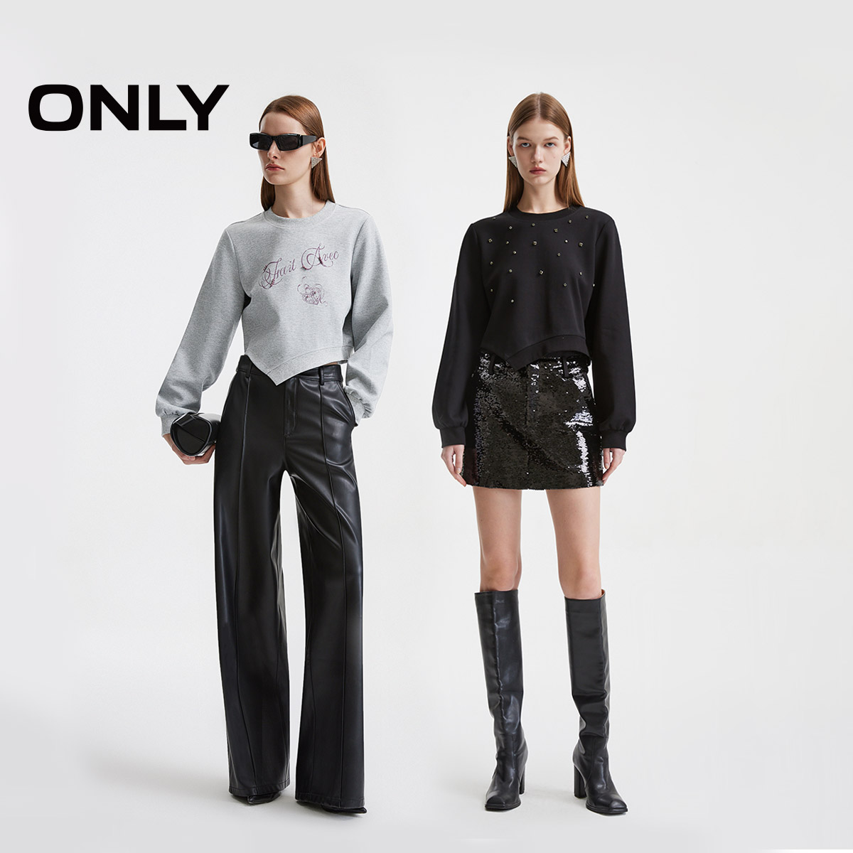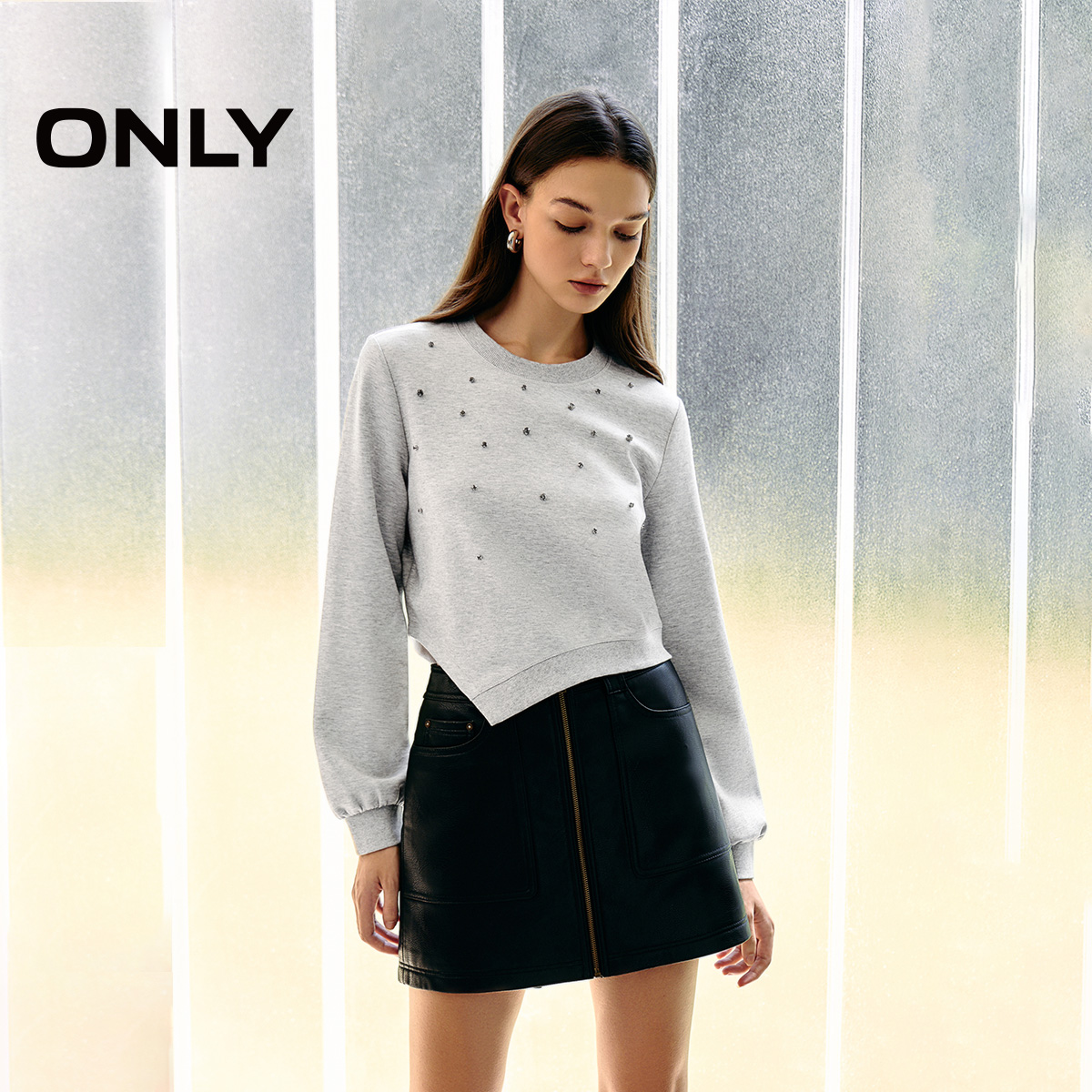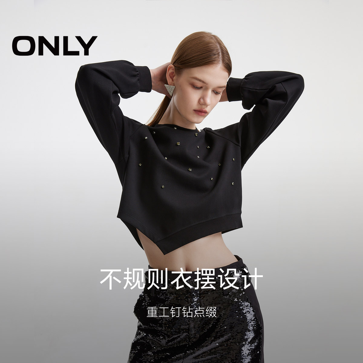 【满天星系列】ONLY冬季设计感亮钻装饰正肩圆领卫衣女