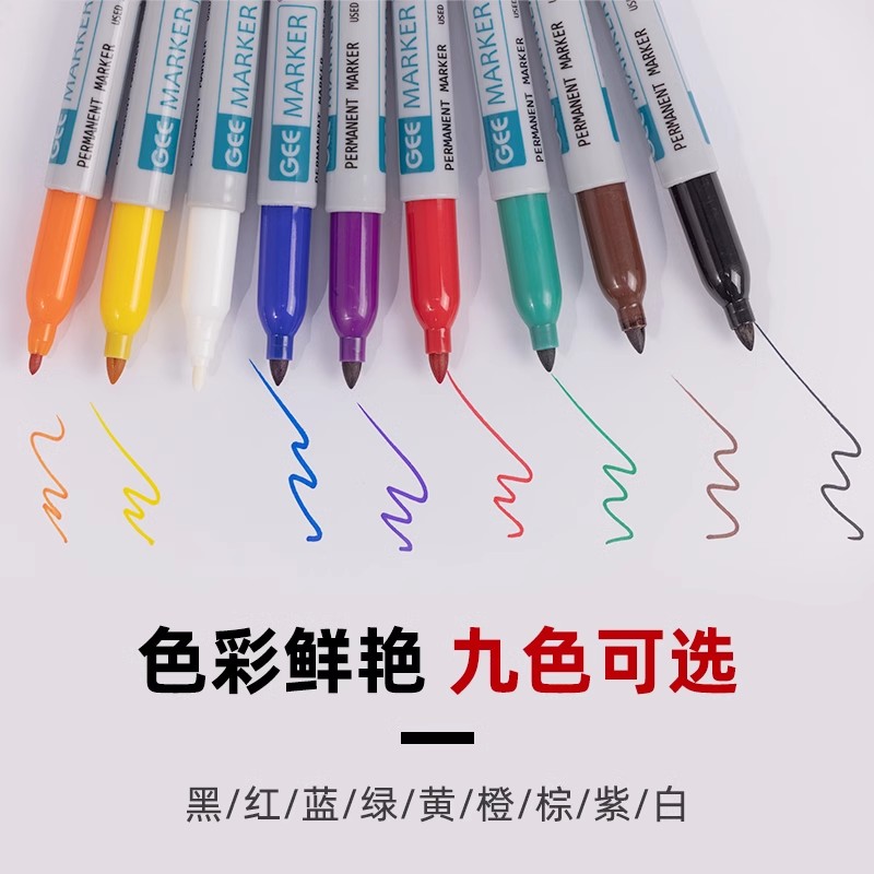 geemarker油性记号笔 细头低氯不锈钢专用笔 耐高温工业打点标记笔 快干防水咖啡奶茶杯书写马克笔G-370 1mm