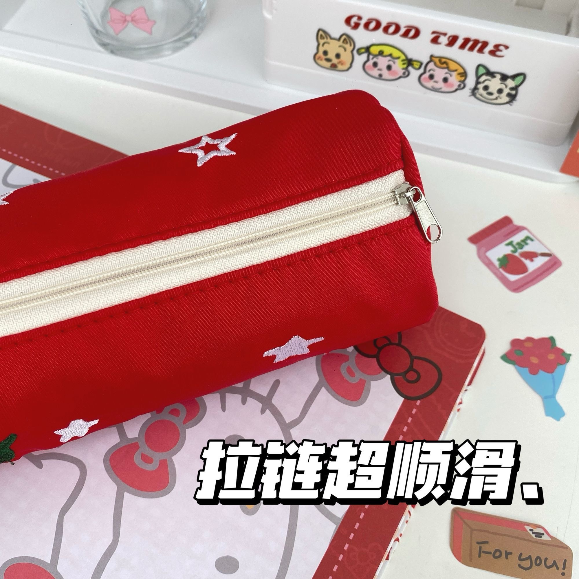 新款红苹果刺绣笔袋高颜值个性圆筒文具袋简约大容量学生收纳袋