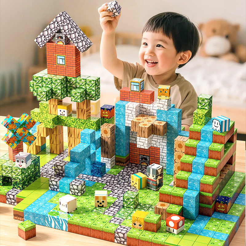 我的世界磁力方块机关山洞3d磁铁积木磁吸男孩子儿童玩具全套礼物