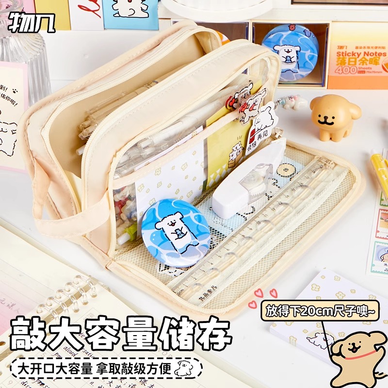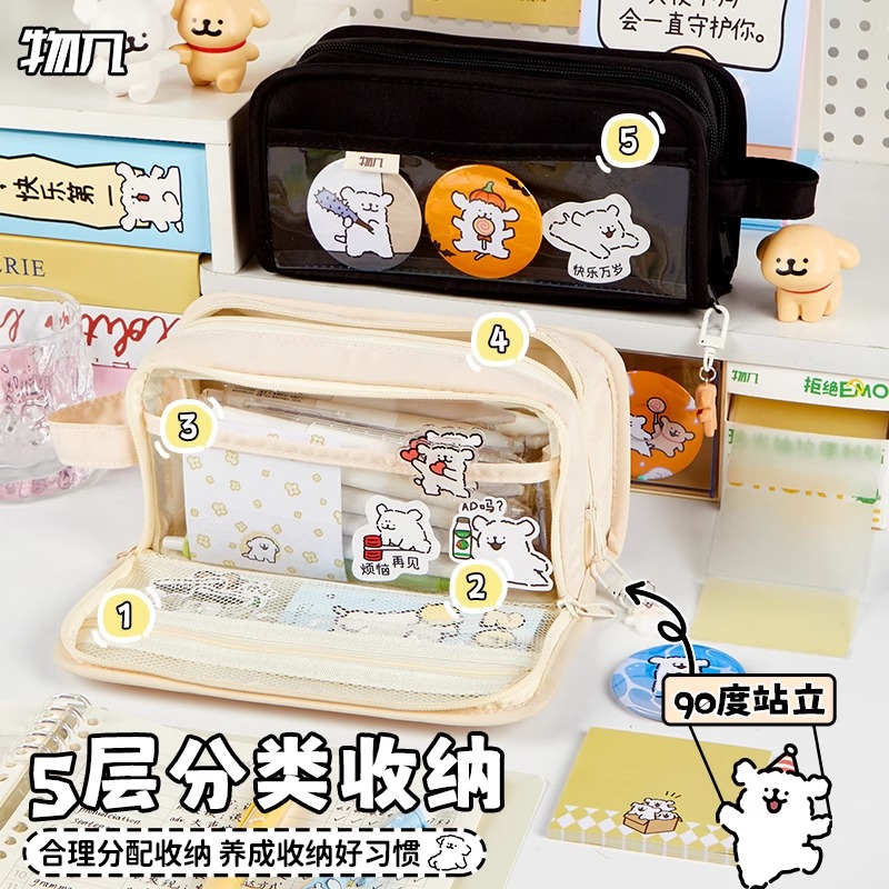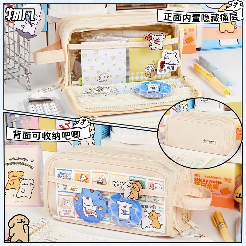 2025新款超火线条小狗大容量笔袋隐藏痛层文具盒吧唧diy材料高颜值多功能文具收纳袋初中生男透明笔铅笔盒女1