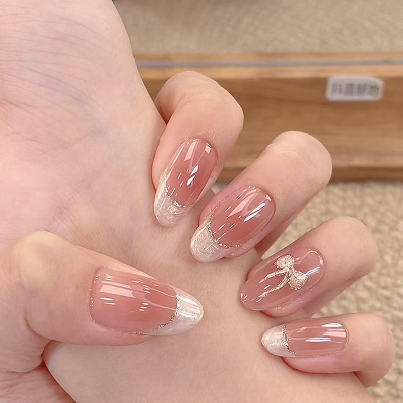 金玉腰夏季新款溜边法式纯手工穿戴甲气质千金显白手工椭圆高级