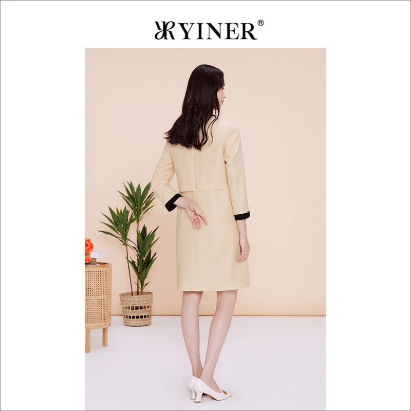 【千金风】YINER音儿专选女装春季法式优雅撞色西装领连衣裙