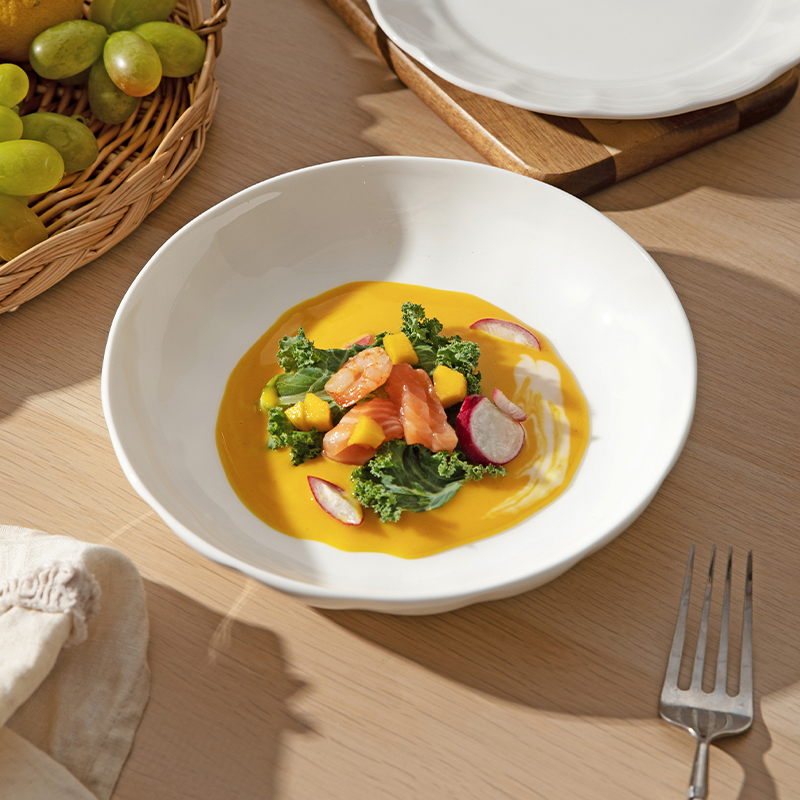 创意ins风高级感荷叶边陶瓷盘意面盘深盘西餐盘水果沙拉碗酸奶碗