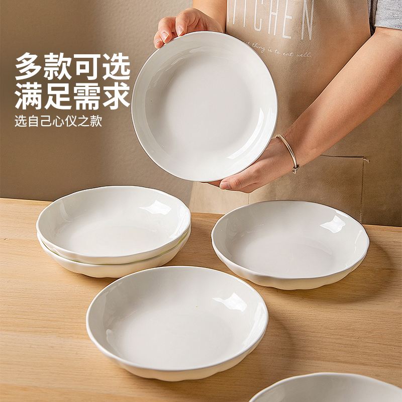 白色盘子菜盘陶瓷餐具碗碟套装家用汤碗大号面碗米饭碗深盘蒸鱼盘