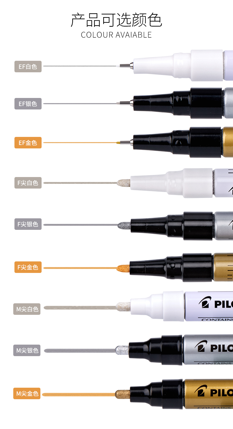 日本PILOT百乐SC-EF特细大小号油漆笔白银金色金属高光签字记号笔