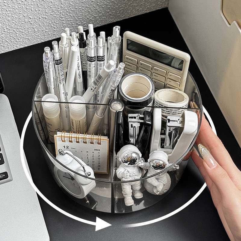 旋转笔筒轻奢高级感办公室桌面笔桶亚克力多功能大容量文具收纳盒