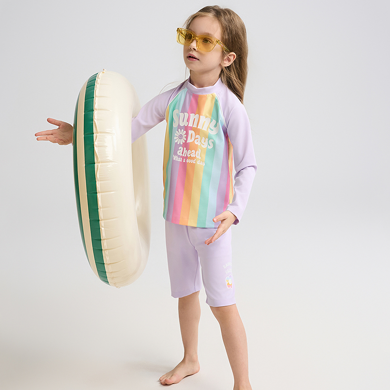 爱慕儿童缤纷彩虹女孩防晒耐氯长袖五分裤分身泳衣套装AK167H313