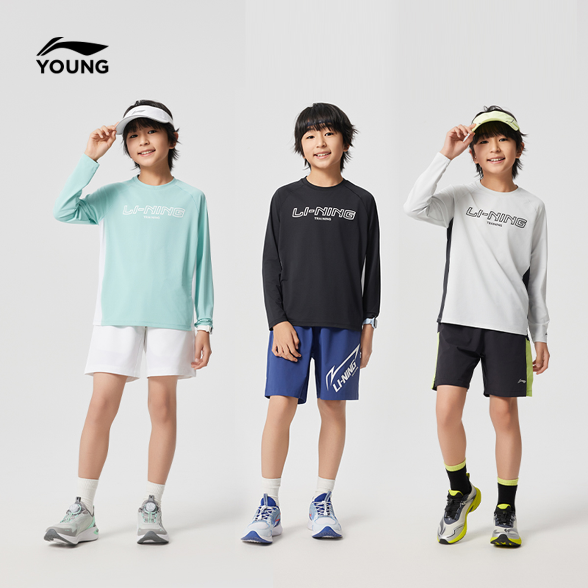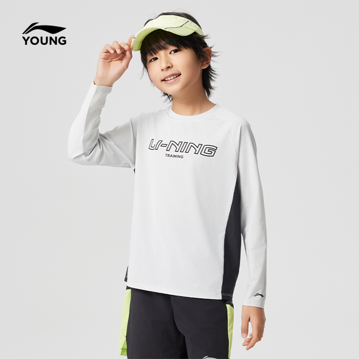 李宁童装长袖T恤男女小大童综合体能系列春季圆领上衣针织运动服