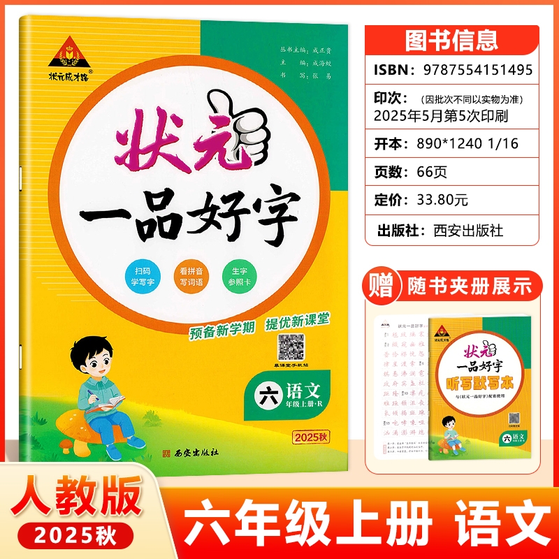 2025秋状元一品好字一二三四五六年级上册语文人教版同步练习字帖课堂新版读书预备成才写字6年级阅读课文讲解