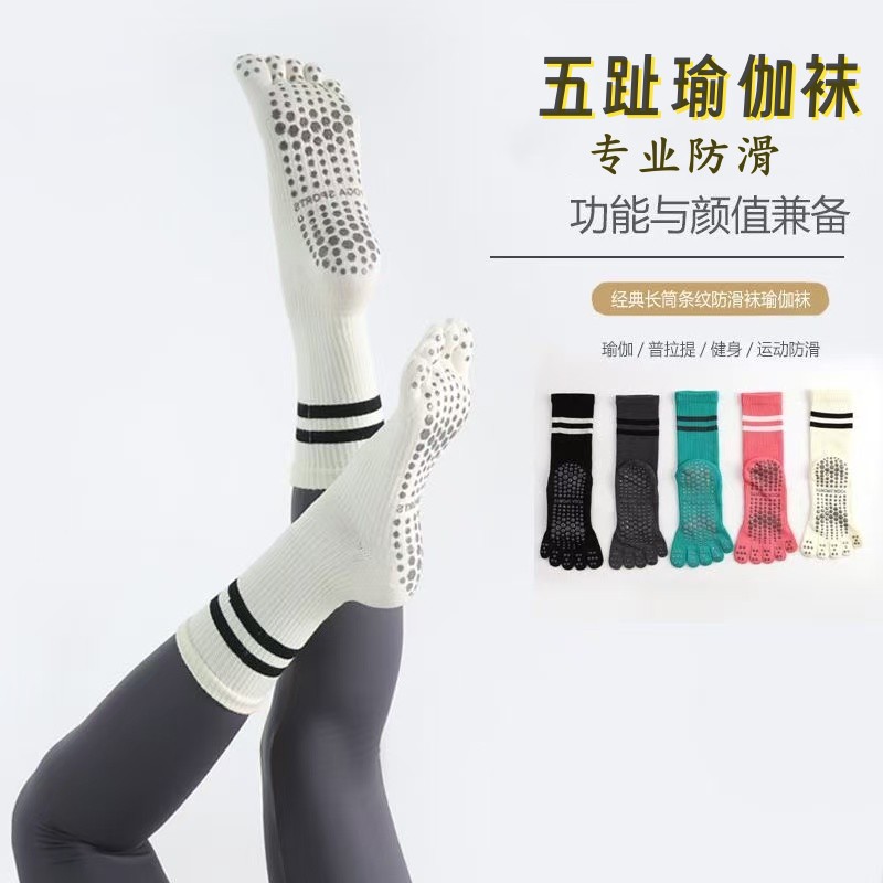 瑜伽袜子防滑专业女普拉提五指袜运动训练长袜分趾跳舞中筒棉袜新