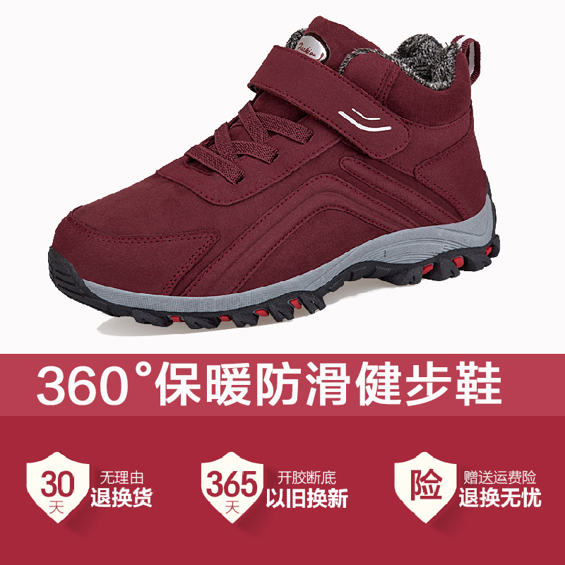 寿足力老人健步鞋棉鞋女冬季保暖鞋加绒妈妈鞋加厚舒适防滑中老年