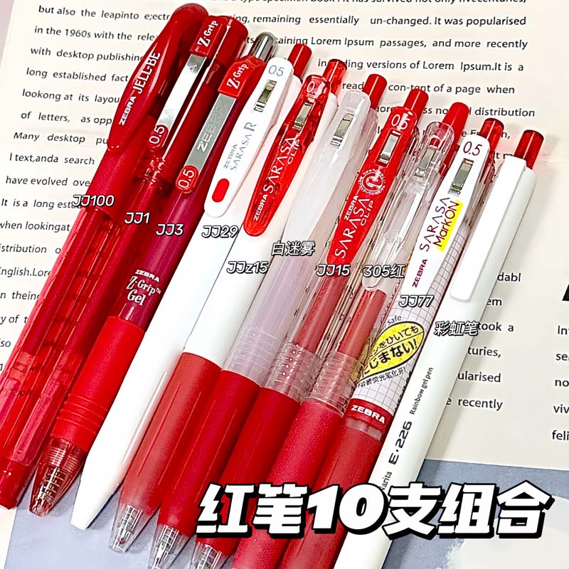日本ZEBRA斑马红笔组合套装教师专用批改划重点红色中性笔不晕染速干水笔ins风高颜值送礼老师教师节心意礼物