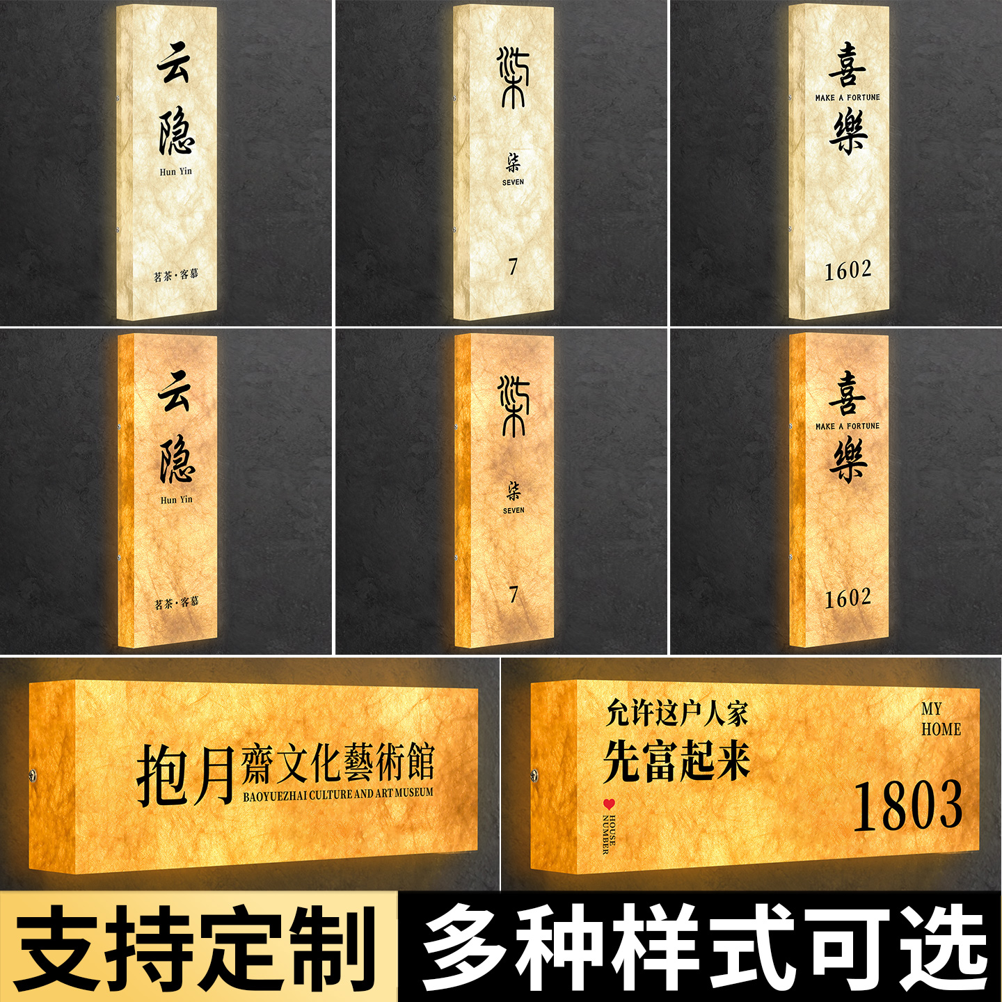 轻奢棋牌室门牌杜邦纸宣纸灯箱挂牌麻将馆包间房间门口中古风创意装饰标识vip房号宴会厅国风亮灯发光广告牌