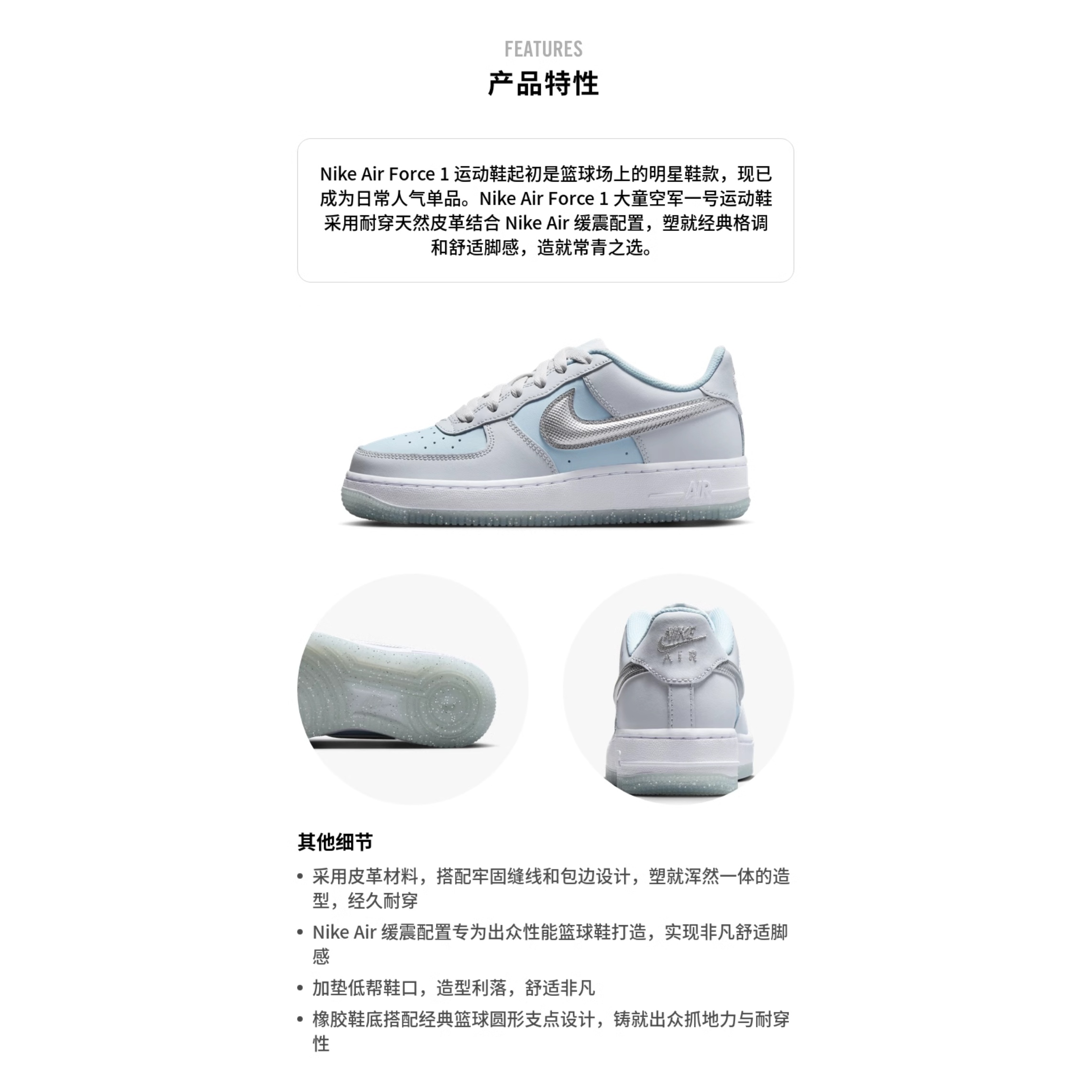 Nike Air Force 1 舒适百搭 防滑减震 低帮 儿童板鞋 银蓝 青少年