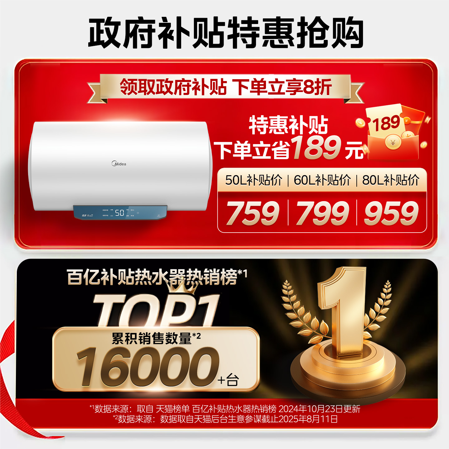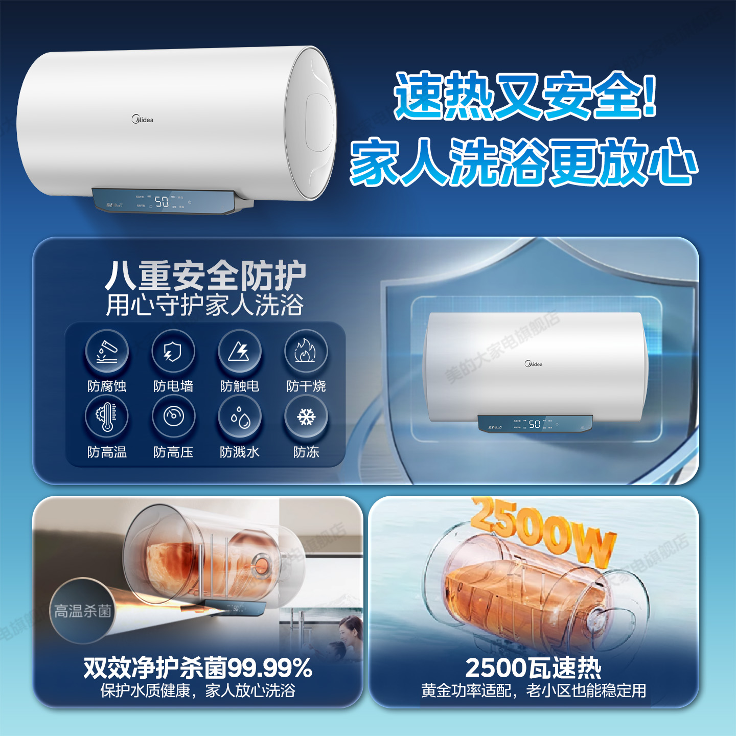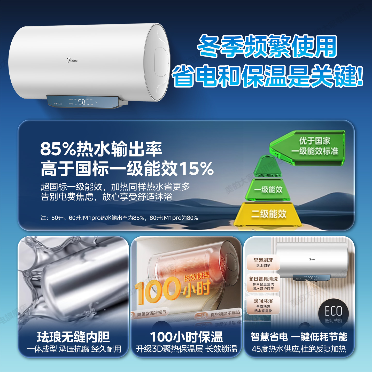 美的电热水器家用卫生间洗澡出租一级省电50/60/80L官方旗舰店JM1