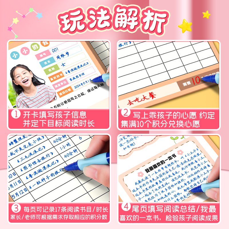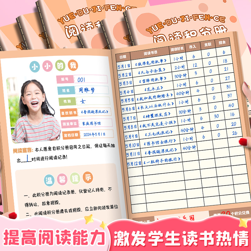 阅读存折积分册小学生阅读记录卡奖励孩子的积分卡读书阅读打卡记录本一年级二三年级登记册计划表儿童激励卡