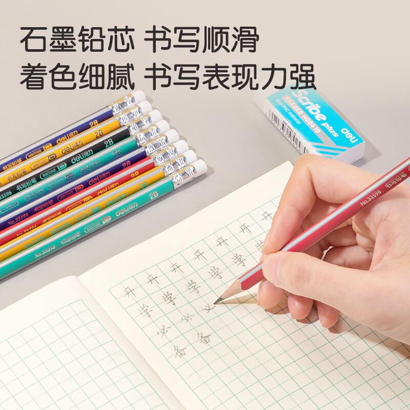 得力铅笔小学生一年级带橡皮儿童hb幼儿园初学者2B原木考试专用