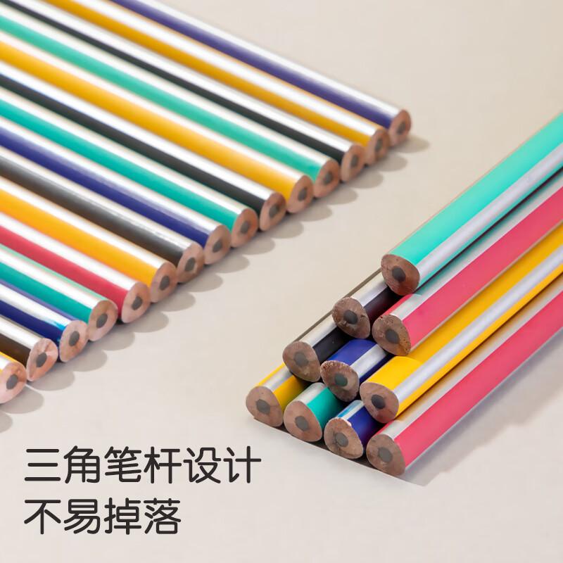 得力经典彩条三角杆2B铅笔带橡皮头学生考试素描绘图50支/桶33596