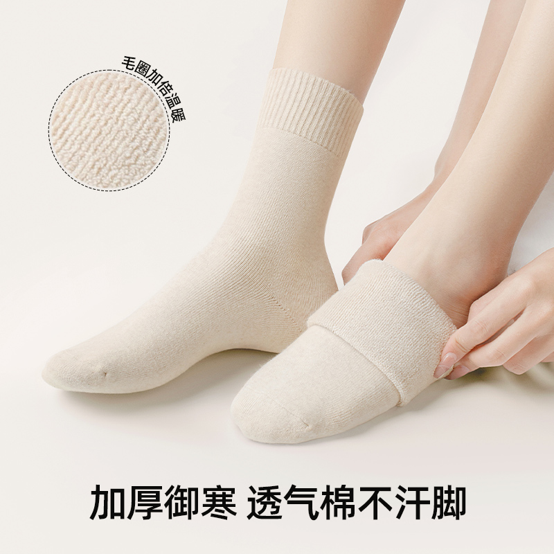 小野和子秋冬季中筒暖冬袜加绒加厚棉袜居家女款棉袜