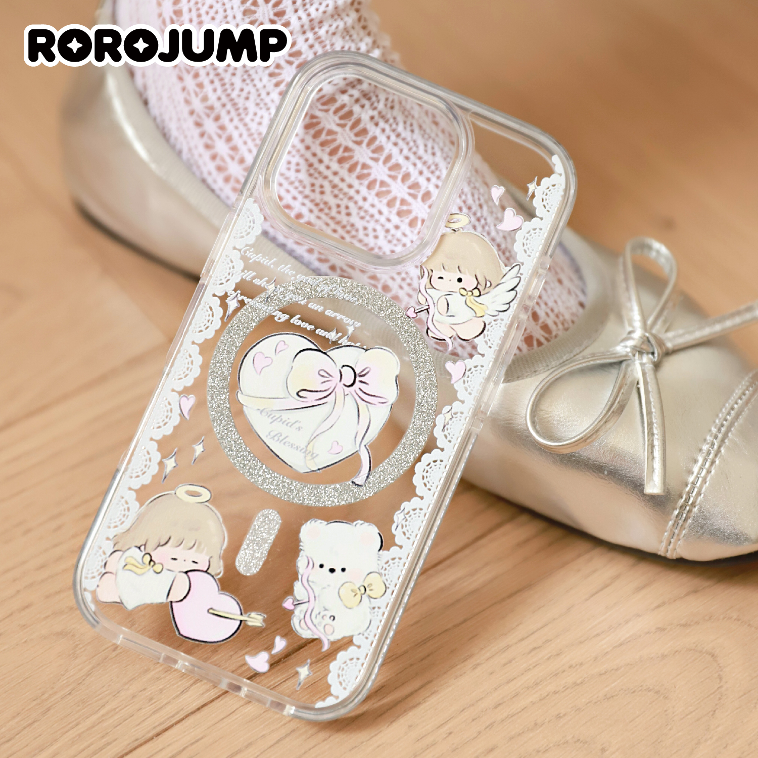 肉肉酱闪亮的天使适用iPhone17promax磁吸手机壳苹果16pro新款闪粉折叠支架15光面14高级感彩色防撞可爱卡通