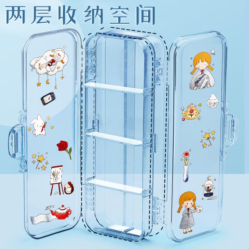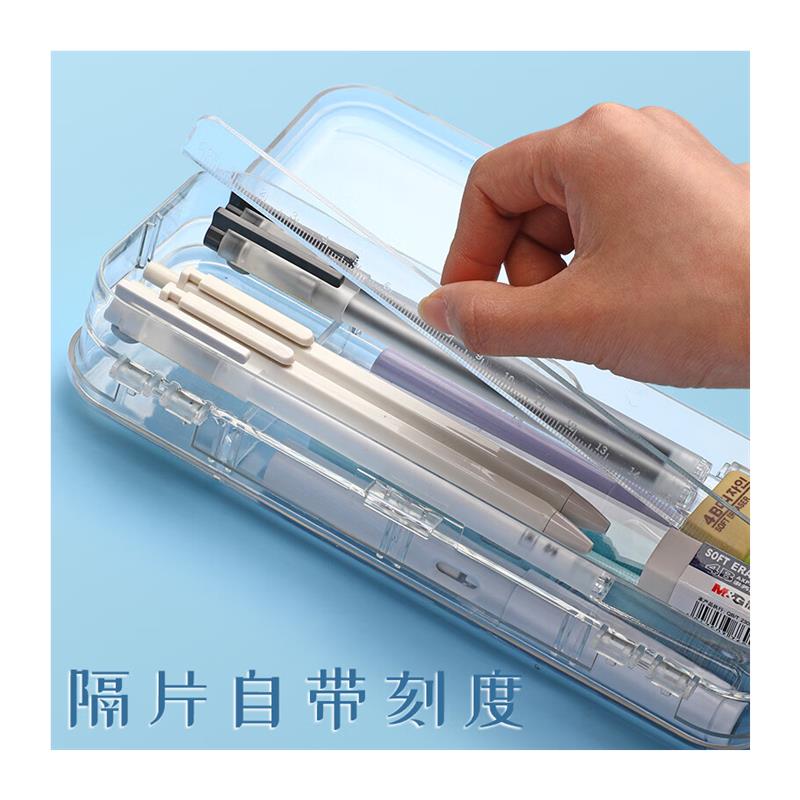 双层透明亚克力笔盒磨砂塑料简约ins日系学生用铅笔盒大容量多功
