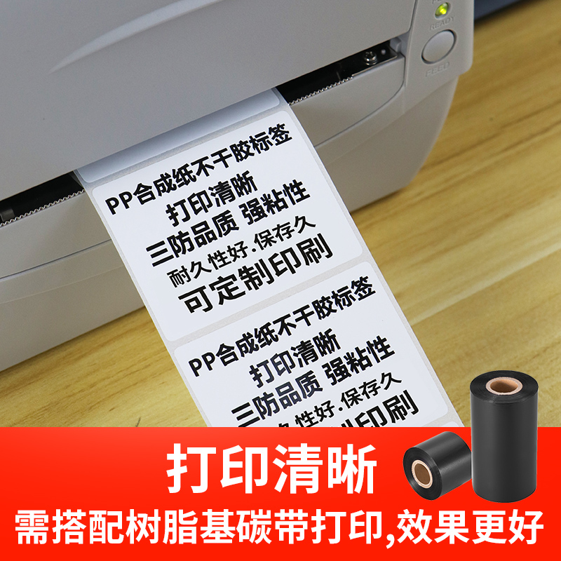 PP合成纸30-150防水标签贴纸20*40 50 60 70 80 90 100 PET不干胶碳带条码打印机背胶撕不烂空白卷可定制防撕