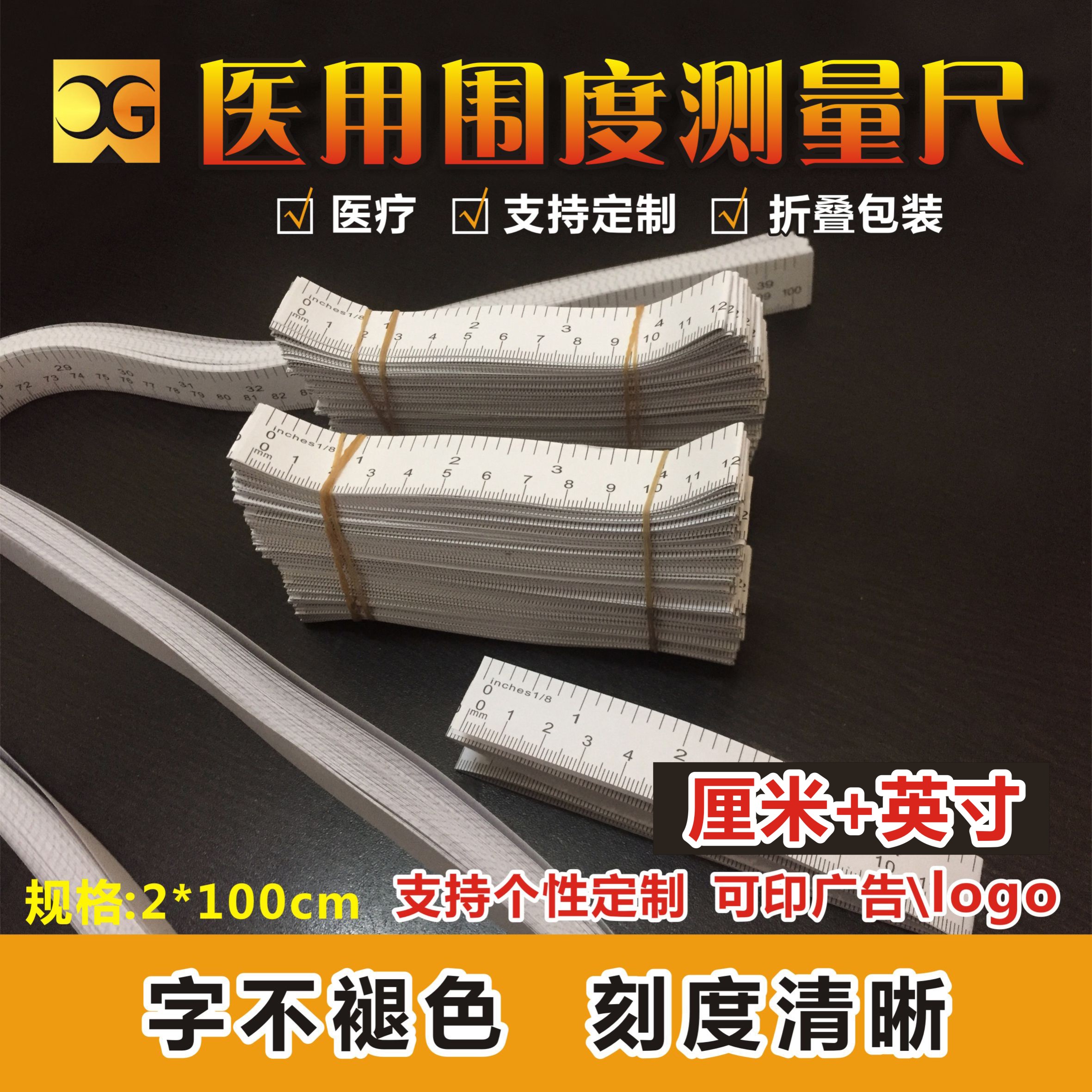 现货医用婴儿头围尺妇幼测量身高腹胸围1-1.5米一次性纸尺-可定制