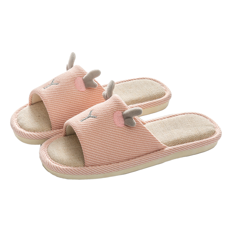 亚麻拖鞋女夏室内家居布艺情侣静音防滑地板吸汗家用棉麻男