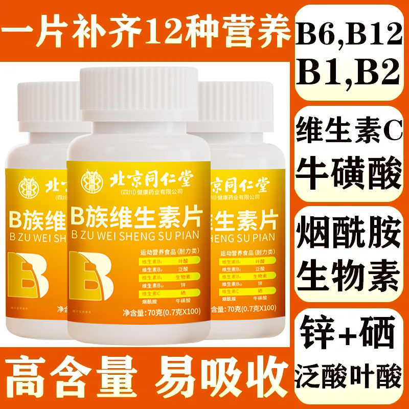 北京同仁堂维生素b族片复合维生素b1b2b6 b12男女士vb补钙多维c片