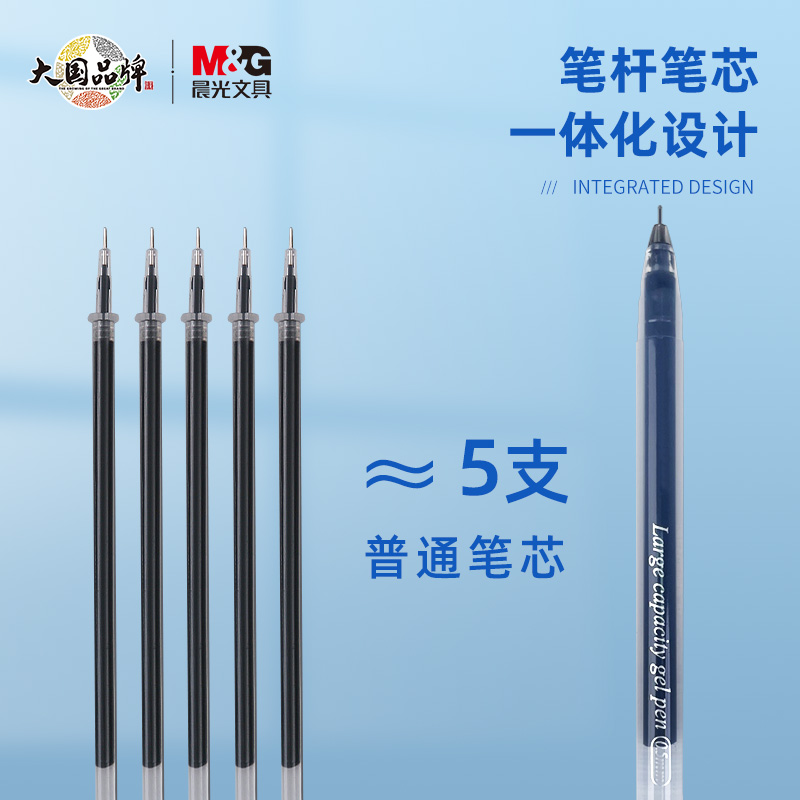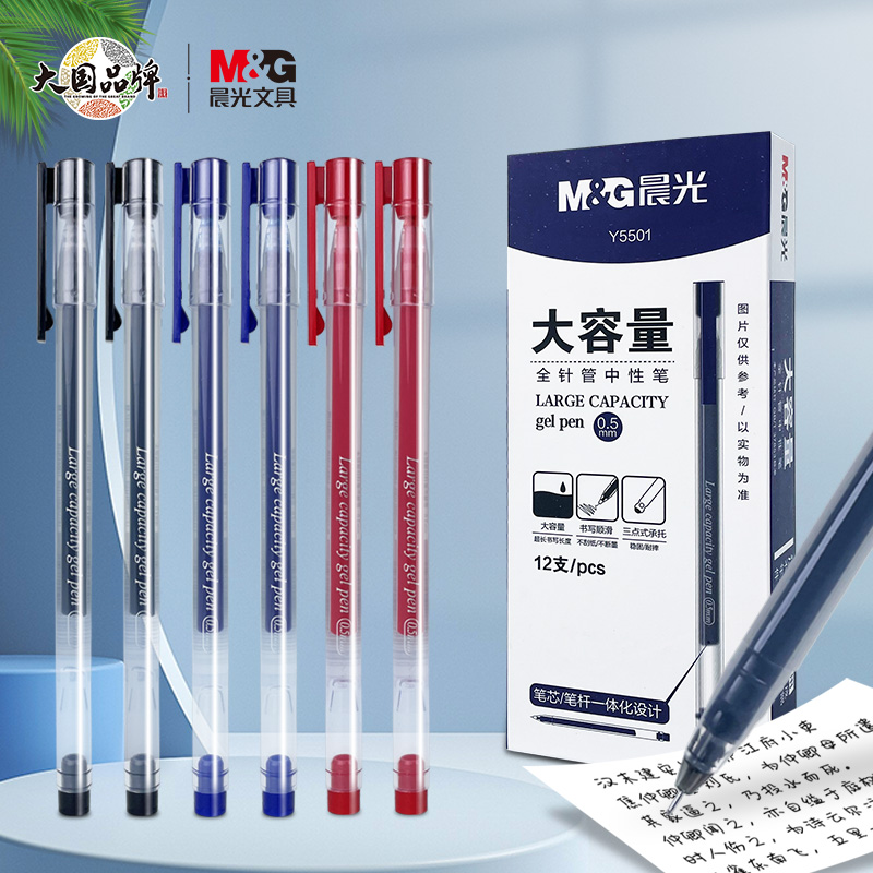 晨光大容量全针管中性笔0.5mm黑色顺滑碳素黑笔速干水性笔刷题笔