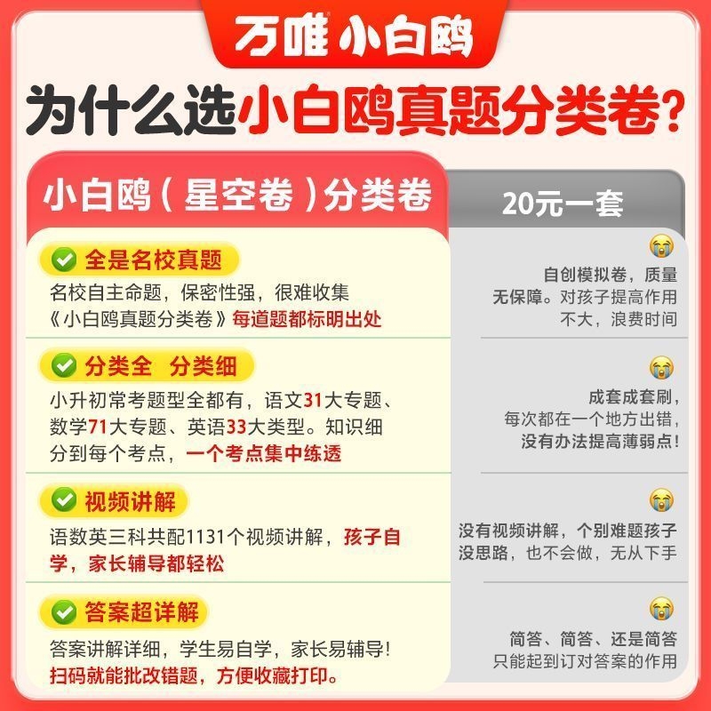 2026小白鸥星空小升初分类卷语文数学英语五年真题超详解人教版小学重点中学招生卷总复习升真卷小白鸽五六年级专项训练应用题试卷