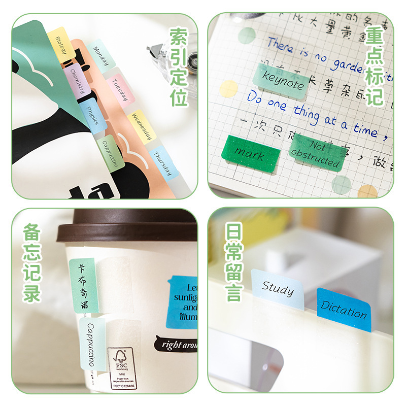 莫兰迪彩色科目分类标签贴纸抽拉式珠光索引贴高颜值ins风便利贴便签记号贴作业标签纸手写可粘贴分组标记贴