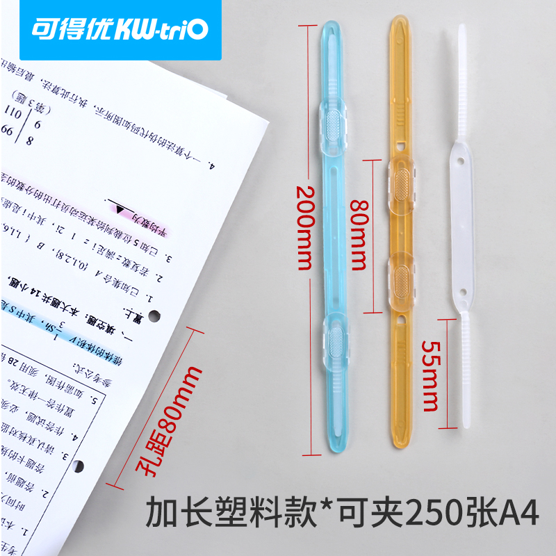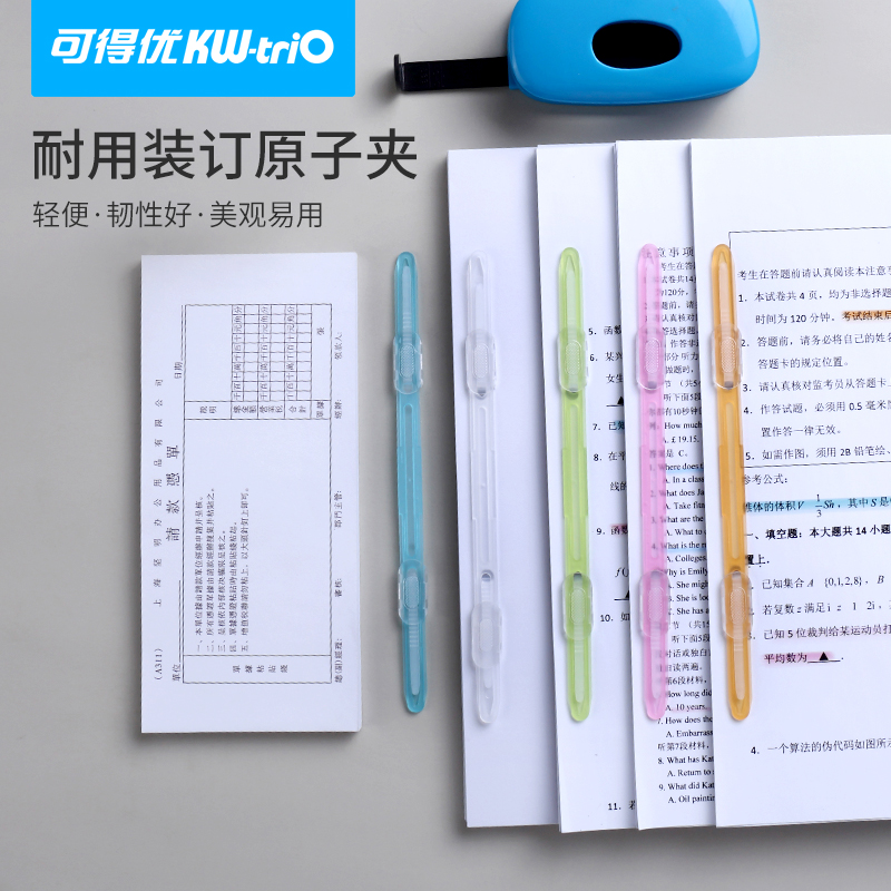 可得优两孔装订夹条双孔原子夹条学习安静书收纳考研活页装订条a4文件凭证打孔塑料压条装订图纸圈条重复开合