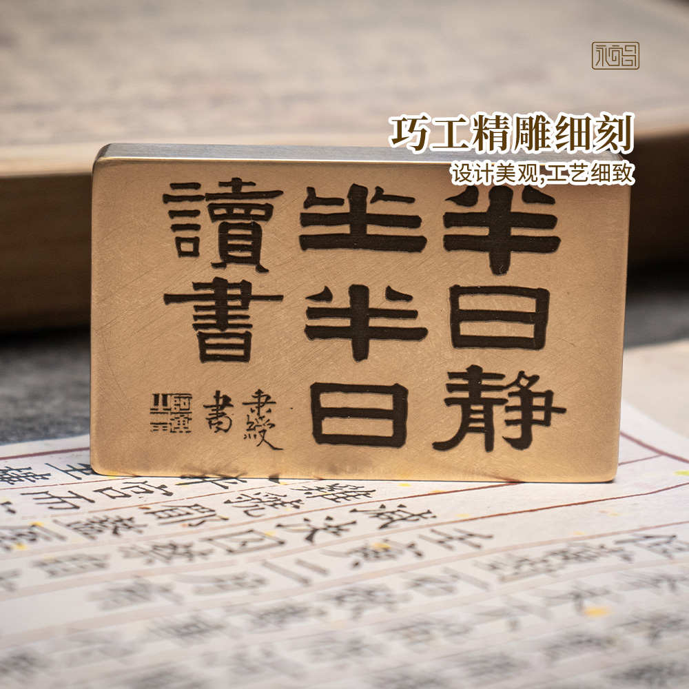 黄铜镇纸手把件伊秉绶半日静坐读书实心书法雕刻文房礼品永宜昌