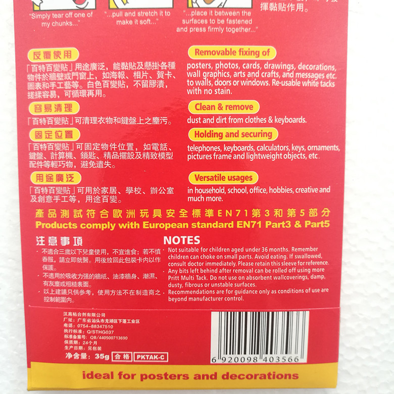 汉高百特百变贴无痕胶贴相框照片墙无痕胶泥反复使用白色 PKTAK-C